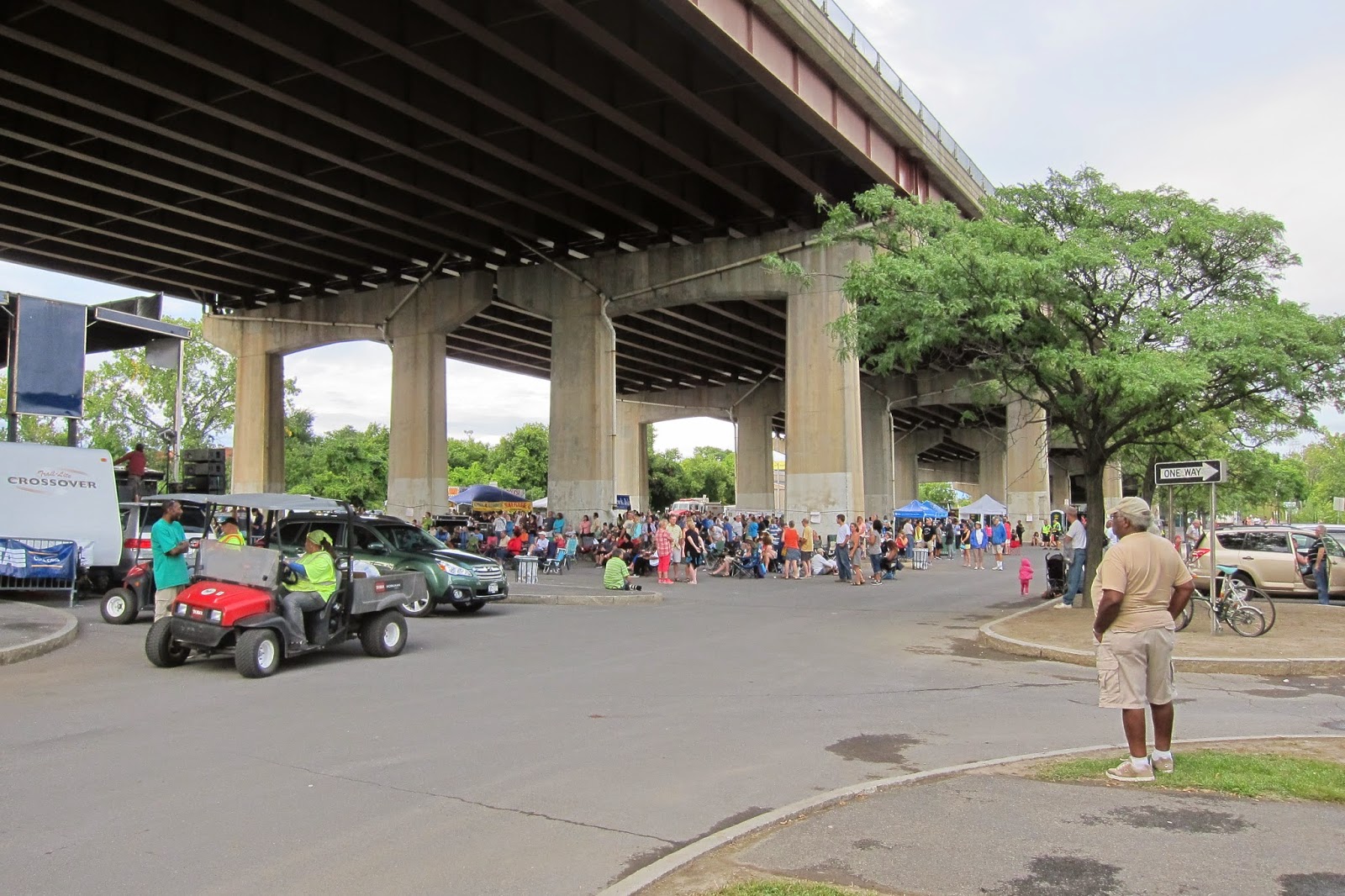 Due to the iffy weather forecast, the performances were moved from Jennings Landing overlooking the river (formerly Albany Riverfront Park) to an unlikely location under a highway overpass. It seemed like a better site for a rumble between the Sharks and the Jets than for a jazz concert.